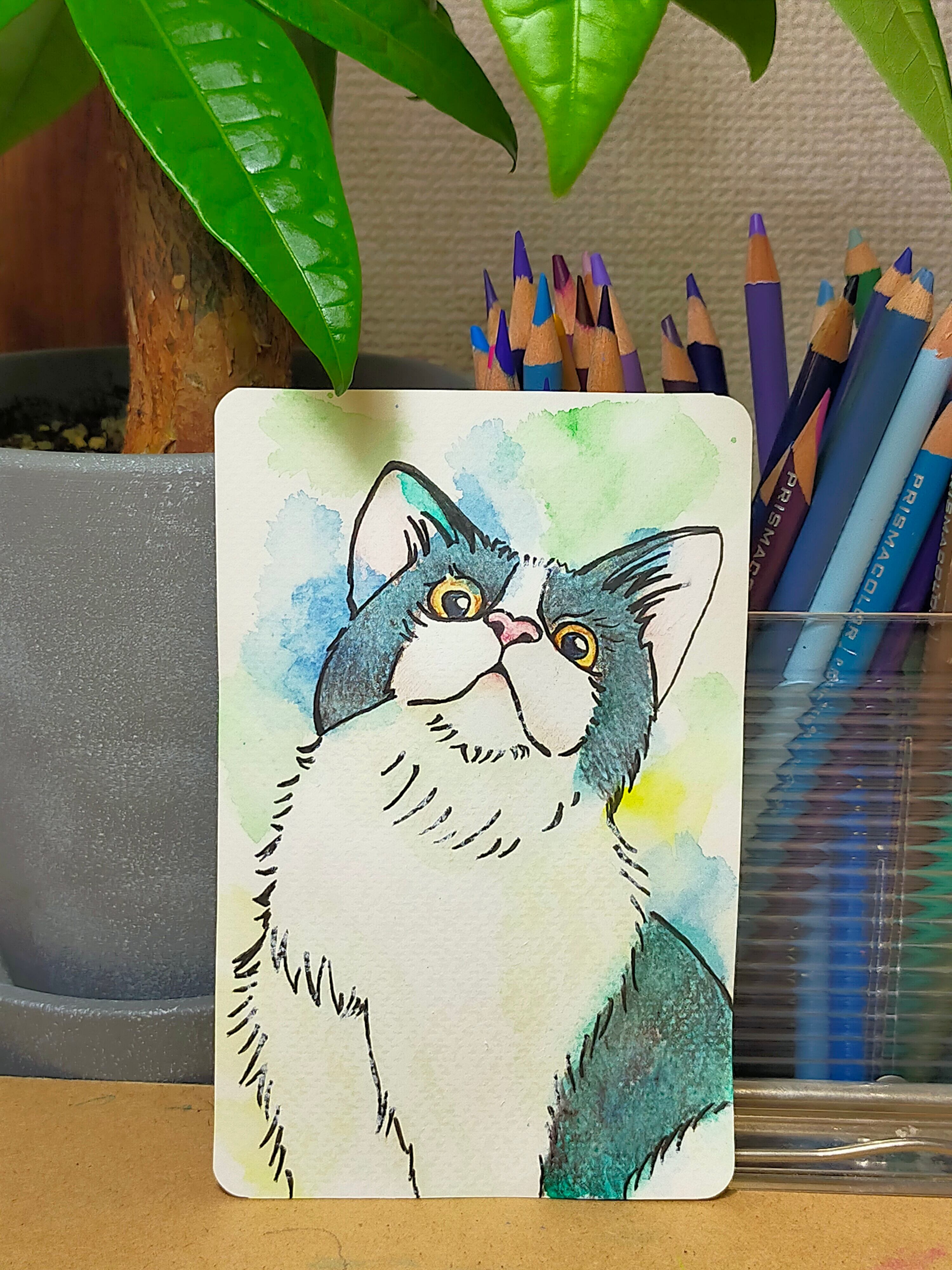 水彩、色鉛筆
